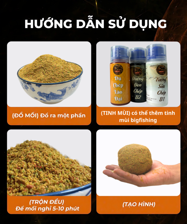 - Kết hợp thêm bộ tam tinh chép : dụ chép lão đại, đường đen chép b2, tương sữa chép b1 của bigfishing nâng cao hiệu quả